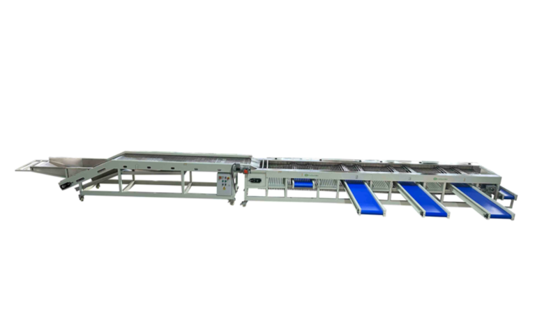冬枣重量分级机是由提升机、拣果台、重量分级机3部分组成。将冬枣倒入提升机,输送到拣果平台,挑好的烂果可以直接扔进出料斗由底下输送带统一输送出去,之后进入重量分级机分选出每个冬枣的重量。