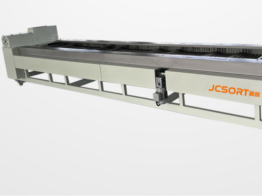 冬枣分选机是由提升机和分级机组成,提升机是自动提升,通过滚杠自动旋转达到均匀上料,滚杠上有3米的拣果台,分级机是滚杠式分级机,滚杠式分级机是通过旋转滚动,带动分级机床上的滚杠向前平行移动,使冬枣从滚杠之间的间隙落到出果输送带上,来达到冬枣大小分级的目的,分级后的输送带加长出来,方便挑面果。分级机的分选规格可以随意调节大小